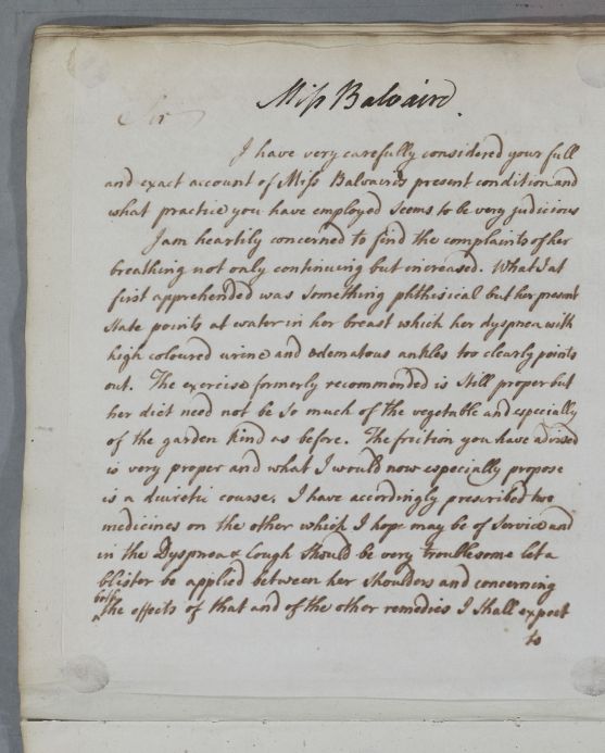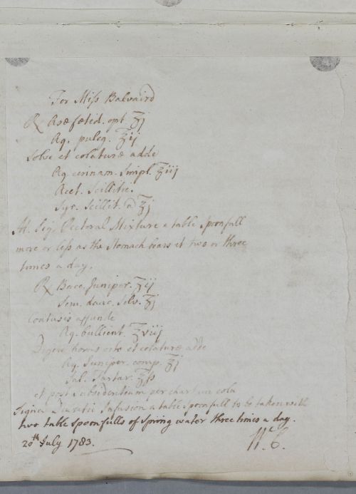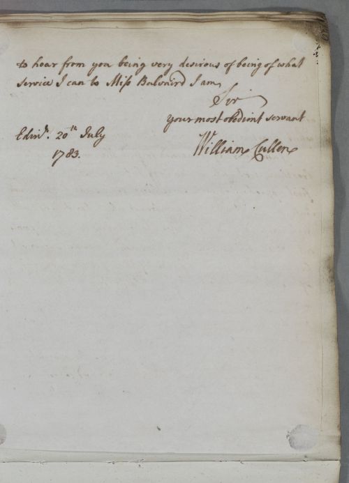 [ID:4661] From: Dr William Cullen (Professor Cullen) / To: Anonymous / Regarding: Miss Balvaird (Patient) / 20 July 1783 / (Outgoing)