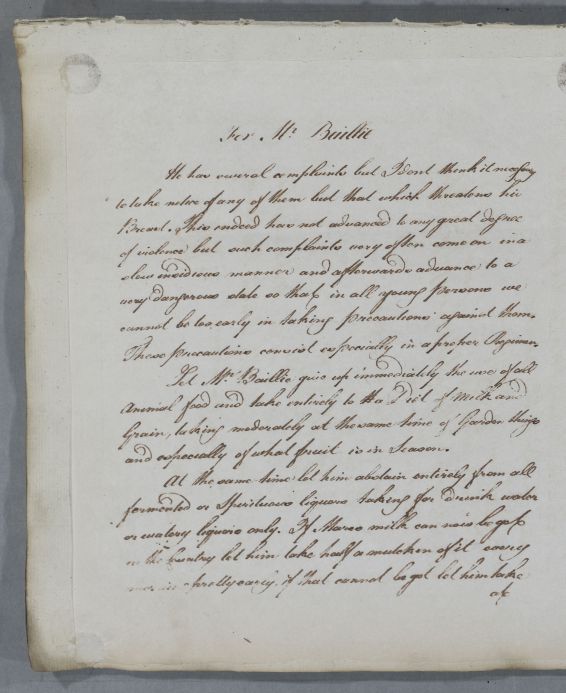 [ID:4667] From: Dr William Cullen (Professor Cullen) / To: Mr Farquhar / Regarding: Mr M Baillie (Patient) / 29 July 1783 / (Outgoing)