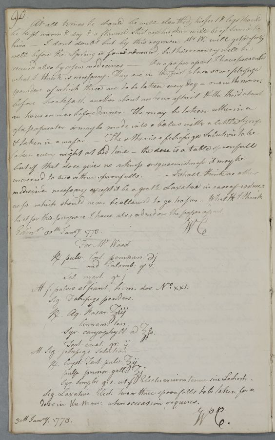 [ID:467] From: Dr William Cullen (Professor Cullen) / To: [ADDRESSEE UNKNOWN] / Regarding: Mr Wood (Patient) / 30 January 1773 / (Outgoing)