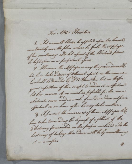 Case of Mr Straiton who is to be blistered and who is prescribed an antispasmodic and a laxative. |