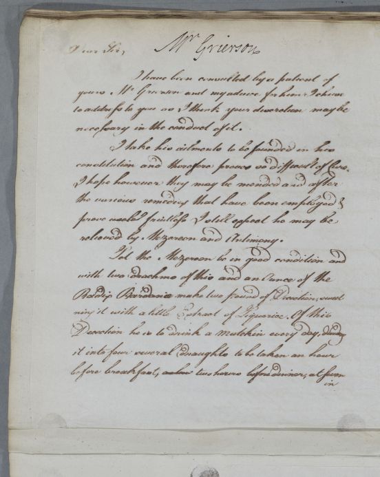 [ID:4684] From: Dr William Cullen (Professor Cullen) / To: [ADDRESSEE UNKNOWN] / Regarding: Mr Grierson (Patient) / 8 August 1783 / (Outgoing)