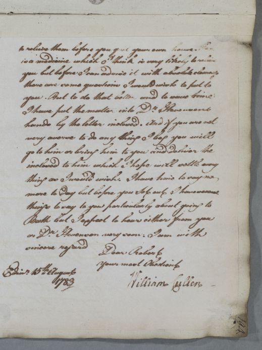 [ID:4689] From: Dr William Cullen (Professor Cullen) / To: Mr Robert Barclay / Regarding: Mr Robert Barclay (Patient) / 15 August 1783 / (Outgoing)