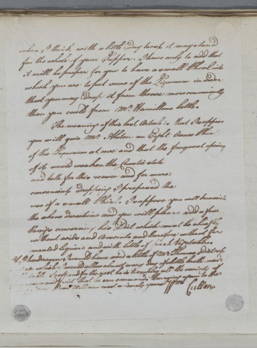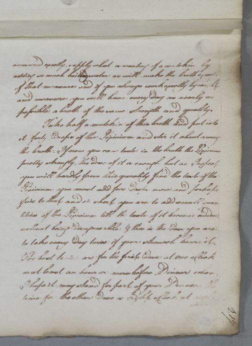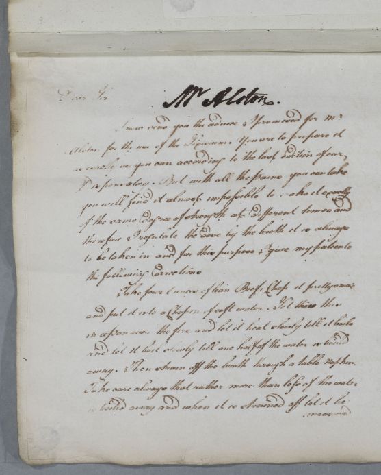 | Summary | Reply to William Hamilton concerning the case of John Alston of Overhall. Cullen gives full instructions for preparing the beef broth to carry and regulate the dose of lixivium (for treating him for the stone). There is a brief mention of his son Thomas Alston. |