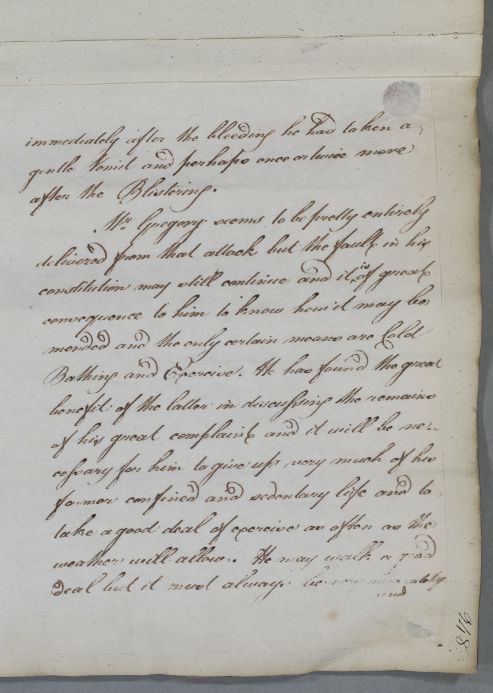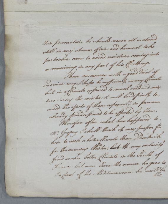 In the care of Mr. Gregorys health {illeg}