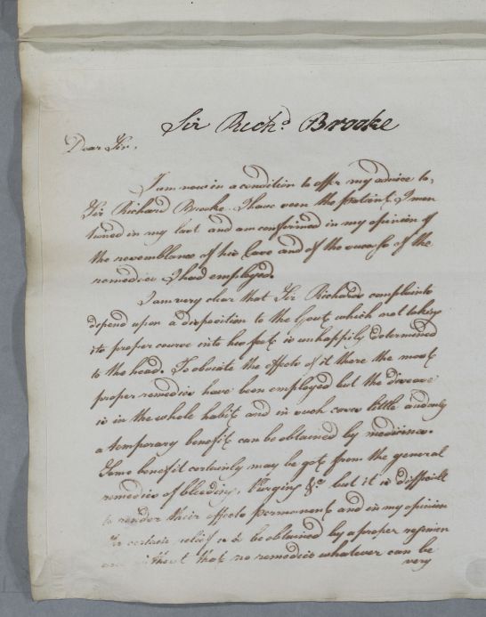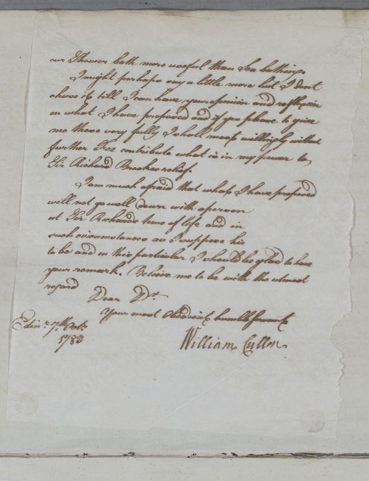 [ID:4724] From: Dr William Cullen (Professor Cullen) / To: Dr W. Currie / Regarding: Sir Richard Brooke (Patient) / 7 October 1783 / (Outgoing)