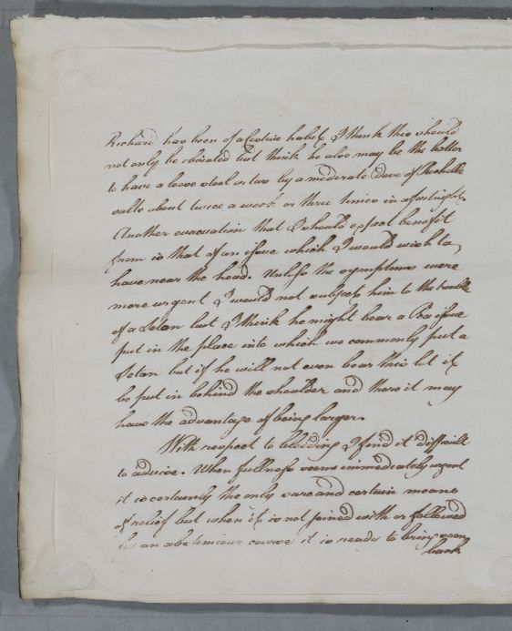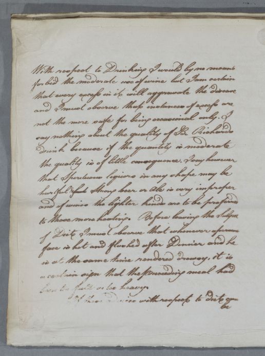 Case of Sir Richard Brooke, who suffers' attacks of Giddiness attended with noise in his ears, dimness of sight, palpitation of his heart, tremors of his hands and frequent drowsiness' after a fever some years previously. |