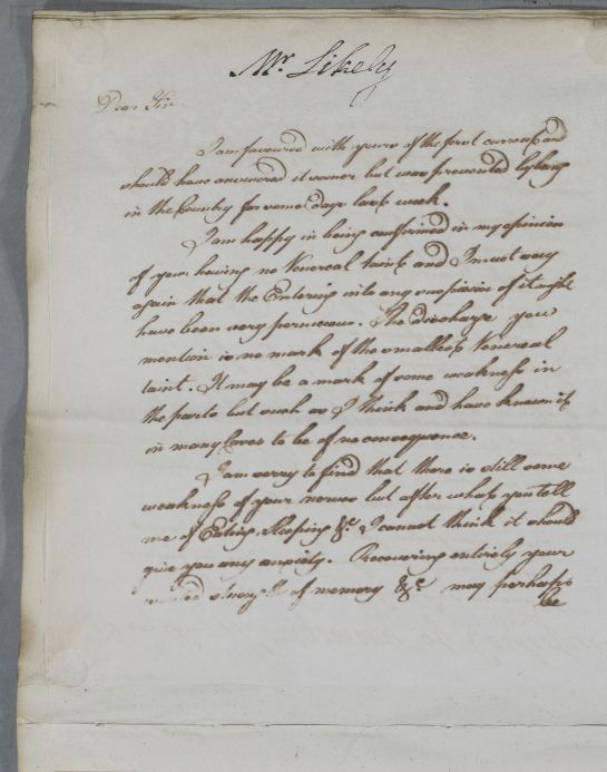 [ID:4726] From: Dr William Cullen (Professor Cullen) / To: [ADDRESSEE UNKNOWN] / Regarding: Mr John Likly (Likely) (Patient) / 7 October 1783 / (Outgoing)