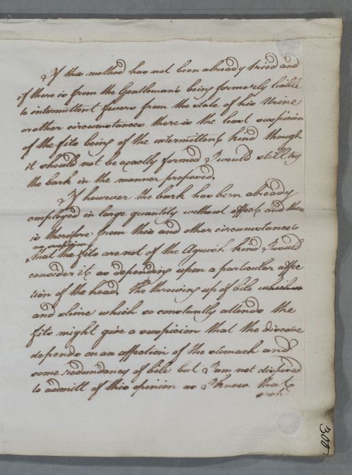 | Summary | Reply to David Gregory concerning 'Mr [Benard] of Dunkirk', whose 'fits of Meagrum' may actually be an intermittent fever. |