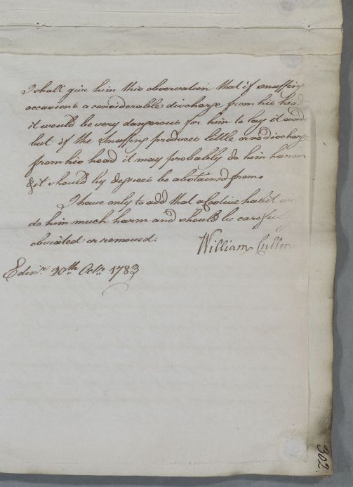 [ID:4732] From: Dr William Cullen (Professor Cullen) / To: Mr David Gregory (Gregorie) / Regarding: Mr Benard (Patient) / 20 October 1783 / (Outgoing)