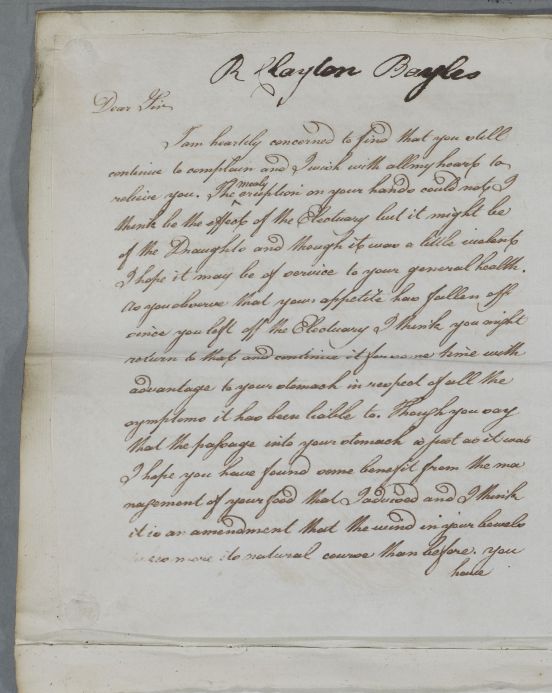 [ID:4733] From: Dr William Cullen (Professor Cullen) / To: Robert Clayton Bayles / Regarding: Robert Clayton Bayles (Patient) / 26 October 1783 / (Outgoing)