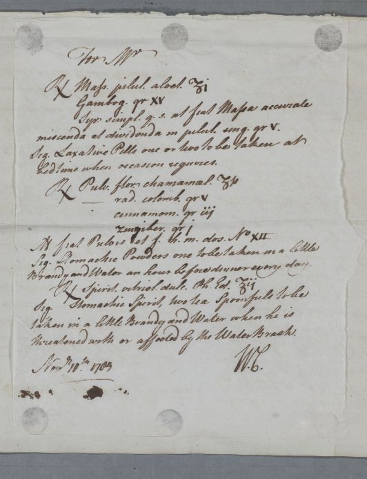 Case of Mr James Hogarth being treated for a 'nervous' complaint which includes stomach pain. |