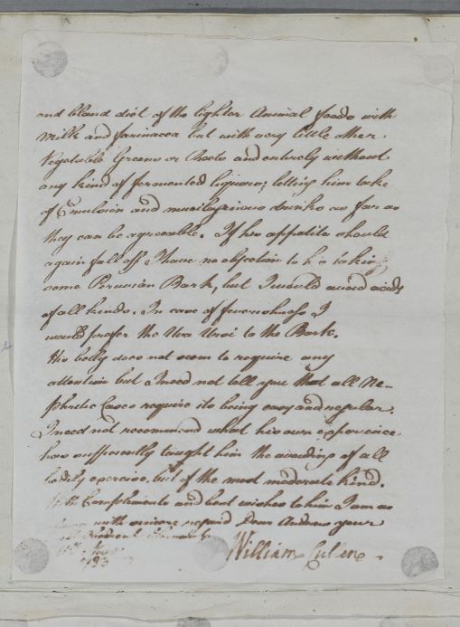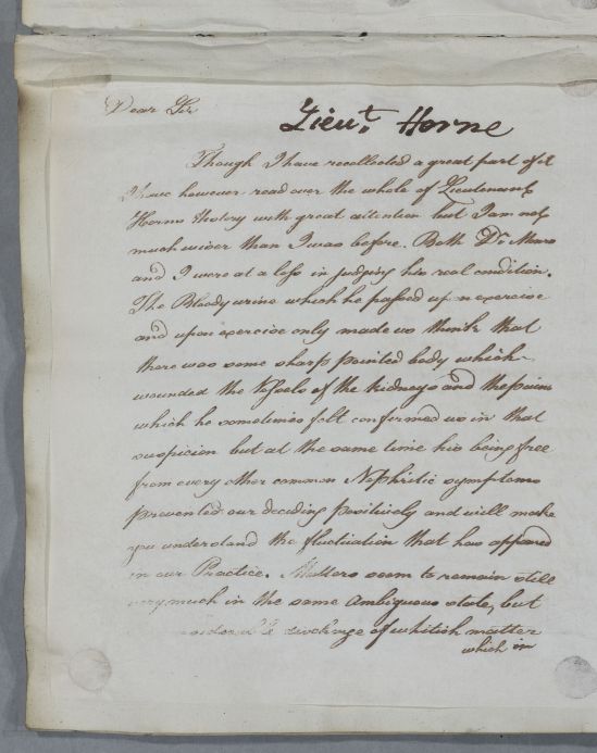 [ID:4742] From: Dr William Cullen (Professor Cullen) / To: Mr Andrew Liddell (Liddle) / Regarding: Lieutenant William Horne (Patient) / 11 November 1783 / (Outgoing)