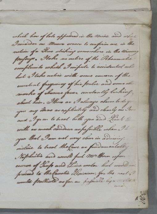 Case of Lieutenant William Horne, who visits Cullen from Ireland in April 1782 to seek advice for a long-standing disorder characterised by pains around his kidney and sediment in his urine and for which he seeks advice again in October 1783. |