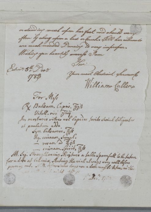 [ID:4753] From: Dr William Cullen (Professor Cullen) / To: Mr William Home / Regarding: Miss (Patient) / 5 December 1783 / (Outgoing)