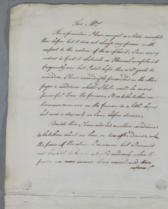 Reply [to Mr Huggart] concerning an unnamed patient, titled only 'For Mrs '.