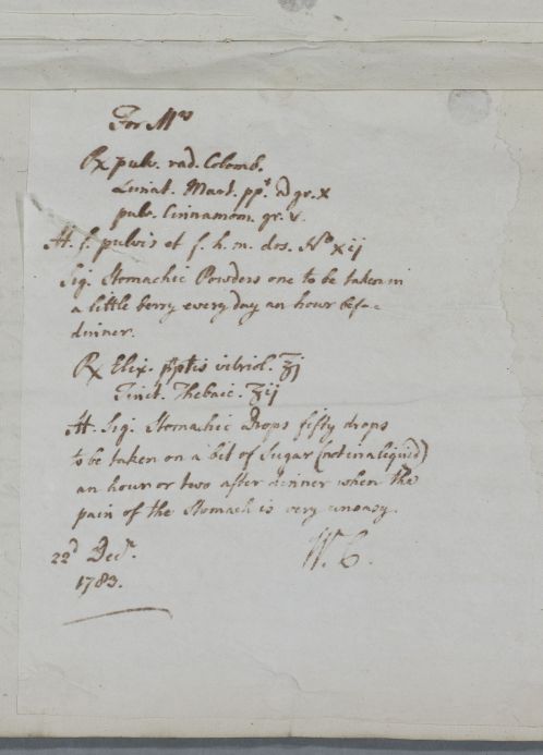 [ID:4763] From: Dr William Cullen (Professor Cullen) / To: Mr Haggart / Regarding: Mrs (Patient) / 22 December 1783 / (Outgoing)