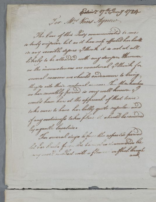 [ID:4772] From: Dr William Cullen (Professor Cullen) / To: [ADDRESSEE UNKNOWN] / Regarding: Mrs Vans Agnew (Patient) / 17 January 1784 / (Outgoing)