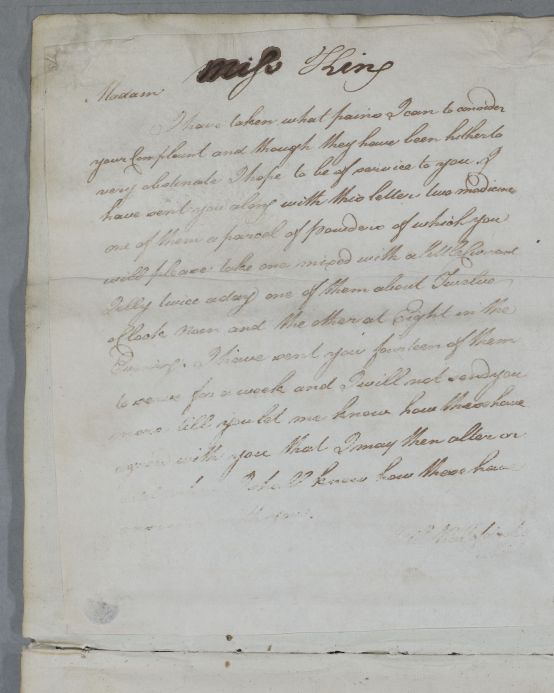 [ID:4781] From: Dr William Cullen (Professor Cullen) / To: Miss Eliza King (Elizabeth) / Regarding: Miss Eliza King (Elizabeth) (Patient) / 13 February 1784 / (Outgoing)