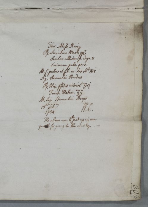 Reply to Miss King, concerning her own case.Letter accompanied a parcel of medicines. Date of the letter a guess based on circumstantial evidence in related letters.