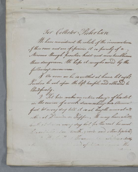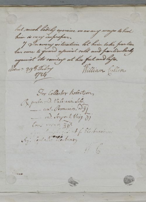 [ID:4787] From: Dr William Cullen (Professor Cullen) / To: [ADDRESSEE UNKNOWN] / Regarding: Mr Robertson (Collector Robertson) (Patient) / February 1784 / (Outgoing)