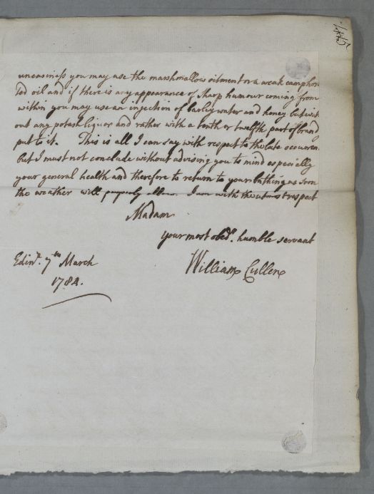 [ID:4792] From: Dr William Cullen (Professor Cullen) / To: Mrs Lucy Maxwell (Gage) (of Munchies, Munches) / Regarding: Mrs Lucy Maxwell (Gage) (of Munchies, Munches) (Patient) / 7 March 1784 / (Outgoing)