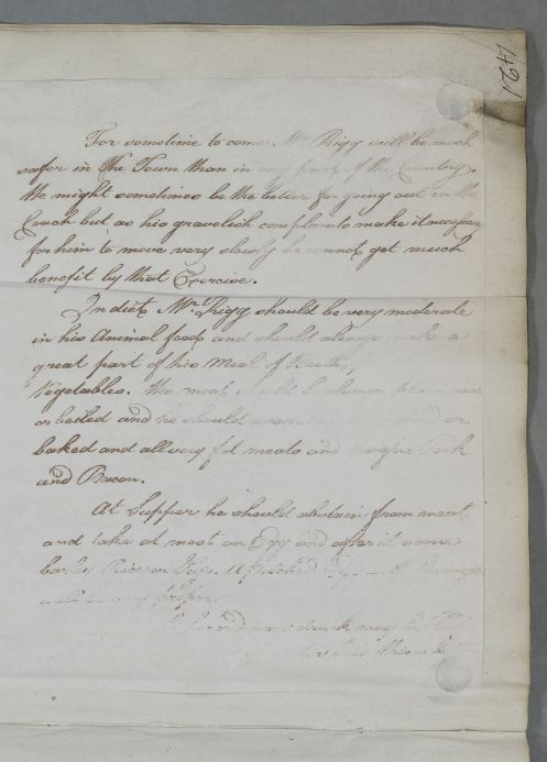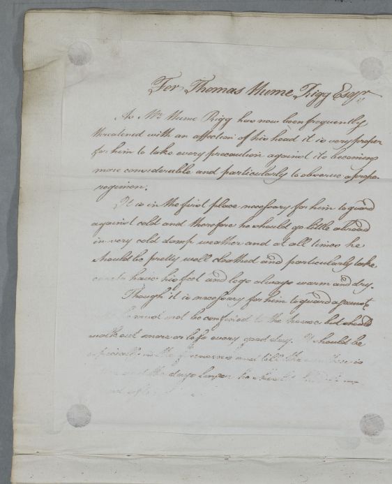 [ID:4797] From: Dr William Cullen (Professor Cullen) / To: [ADDRESSEE UNKNOWN] / Regarding: Mr Thomas Hume Rigg (Patient) / March? 1784? / (Outgoing)