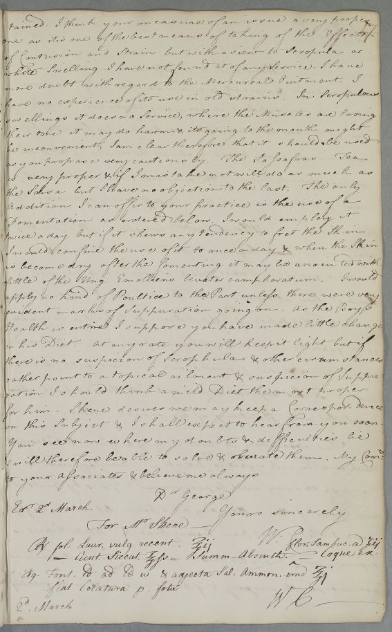 [ID:48] From: Dr William Cullen (Professor Cullen) / To: Dr George Skene / Regarding: [A matter not directly regarding a patient] / 2 March 1769 / (Outgoing)