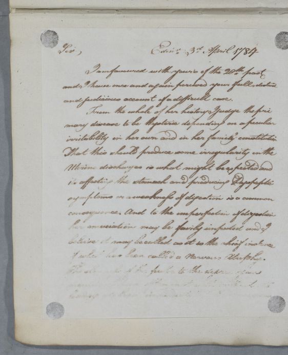 [ID:4810] From: Dr William Cullen (Professor Cullen) / To: Dr E. Smyth / Regarding: Mrs R. (Patient) / 3 April 1784 / (Outgoing)