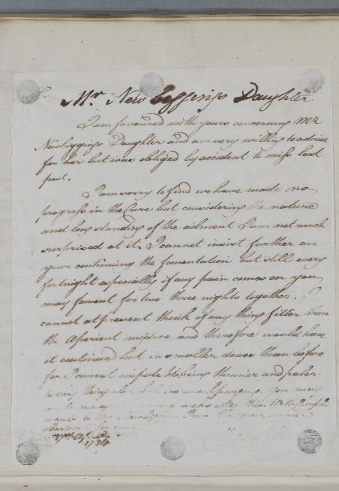 [ID:4817] From: Dr William Cullen (Professor Cullen) / To: John Weir / Regarding: Miss Nancy Newbigging (Nanny) (Patient) / 17? April 1784 / (Outgoing)