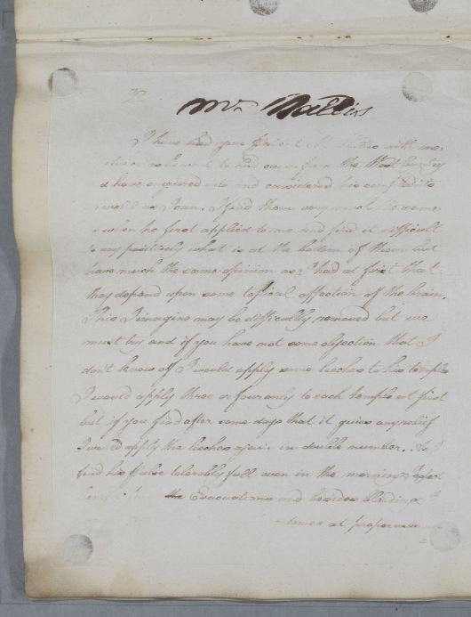 Case of Mr Wallis who suffers from a unremitting pain in his head which Cullen attributes to excess blood on the brain. |