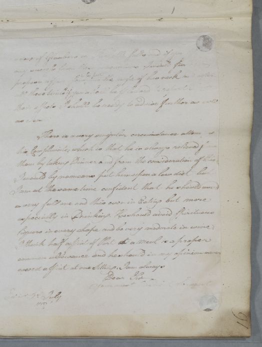 [ID:4863] From: Dr William Cullen (Professor Cullen) / To: Mr William Ingham / Regarding: Mr Wallis (Patient) / July 1784 / (Outgoing)