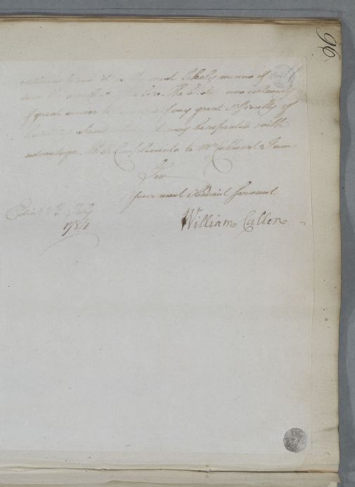 [ID:4867] From: Dr William Cullen (Professor Cullen) / To: Dr George Hamilton / Regarding: Mr Robert Cathcart (of Genoch & Knockdolian) (Patient) / 9 July 1784 / (Outgoing)