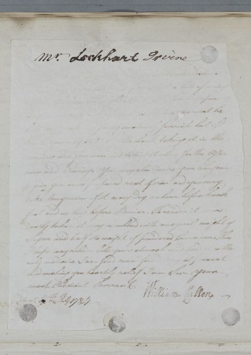 [ID:4876] From: Dr William Cullen (Professor Cullen) / To: Mr Lockhart / Regarding: Mr Lockhart (Patient) / 17 July 1784 / (Outgoing)