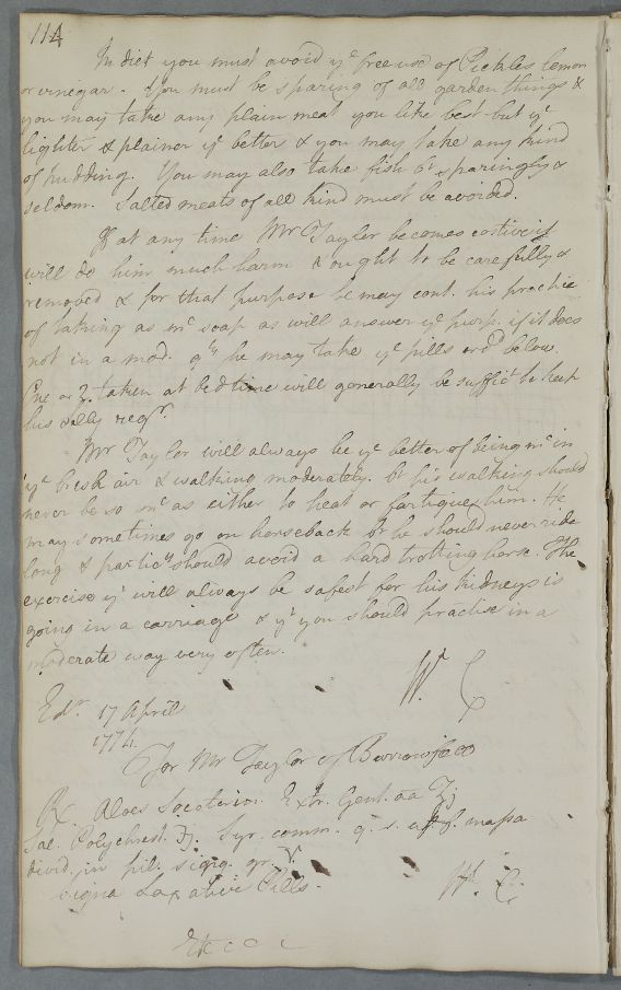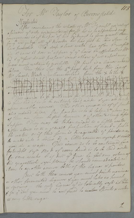 | Summary | Letter for Mr Taylor of Borrowfield, who has kidney problems with "gravel" and is given a laxative prescription. Also refers to case of Mr Smart of Wark. |
