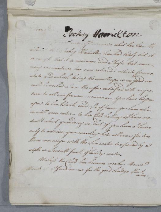 Case of 'little John Hamilton', also known familiarly as Master ' Jackie' or 'Jackey', the infant son of John Hamilton-Dundas of Westburn. The boy suffers from 'eruptions' or 'tumours' resembling smallpox, which recur on his feet. |