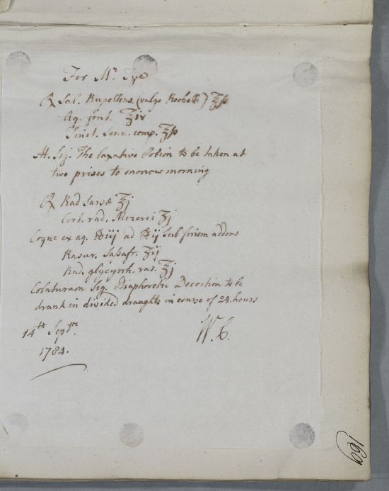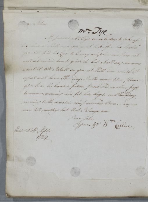 [ID:4913] From: Dr William Cullen (Professor Cullen) / To: Dr John / Regarding: Mr Tye (Patient) / 14 September 1784 / (Outgoing)