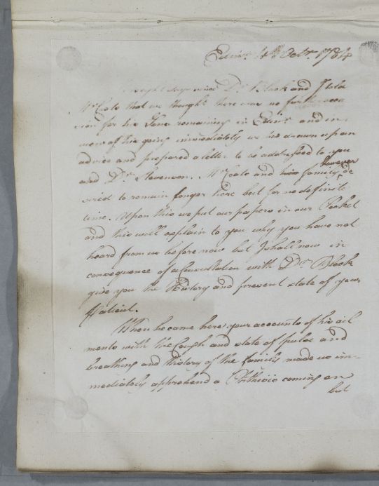 [ID:4926] From: Dr William Cullen (Professor Cullen) / To: Dr Alexander Stevenson (Professor; of Dalgairn ) / Regarding: Mr Coats (Patient) / 4 October 1784 / (Outgoing)