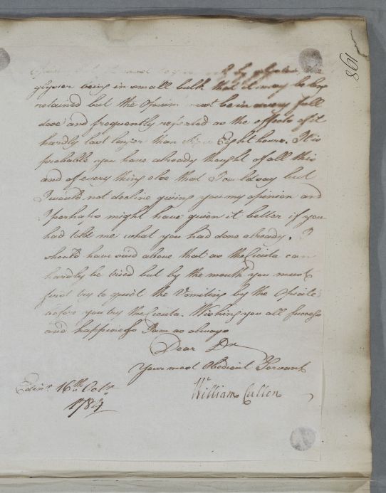 [ID:4933] From: Dr William Cullen (Professor Cullen) / To: Dr Richard Worthington / Regarding: Miss M Burton (Patient) / 16 October 1784 / (Outgoing)