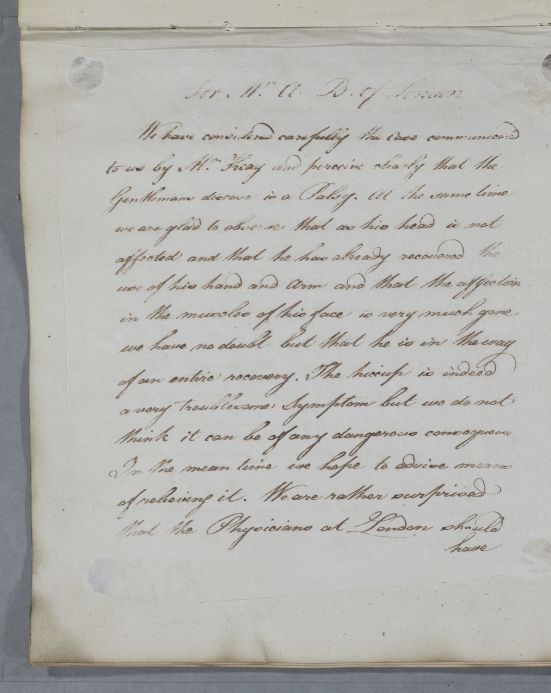 Reply concerning the case of 'Mr A. B. of London'. Name of the person who communicated the Case to Cullen is illegible.