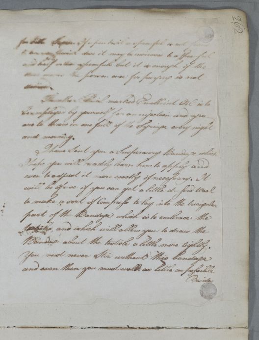 | Summary | Reply giving directions for 'S. J.', to treat his swollen testicle. |