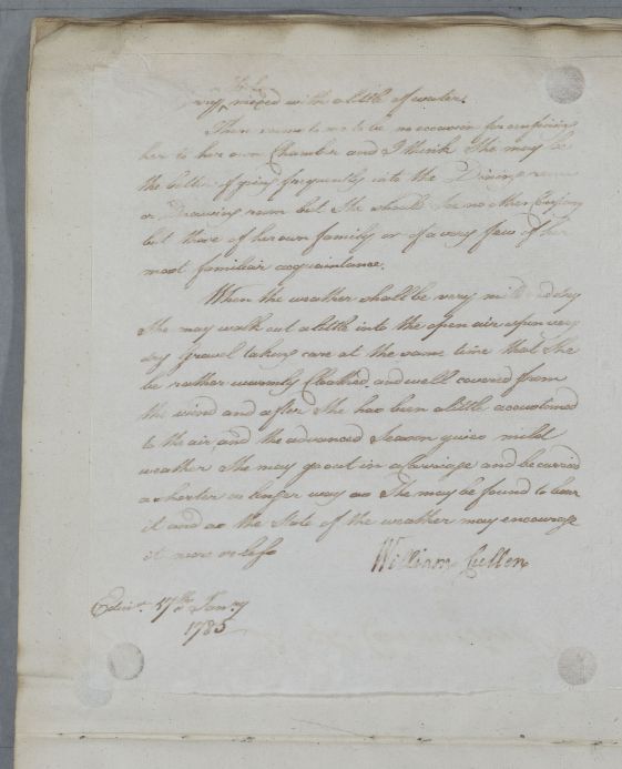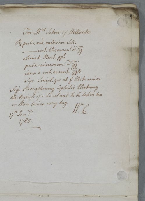 [ID:4970] From: Dr William Cullen (Professor Cullen) / To: [ADDRESSEE UNKNOWN] / Regarding: Mrs Seton (Patient) / 17 January 1785 / (Outgoing)