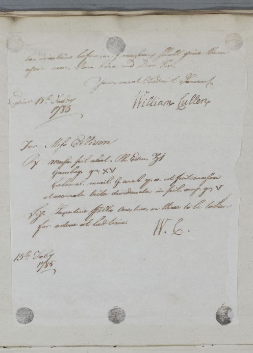 [ID:4984] From: Dr William Cullen (Professor Cullen) / To: Mr William Ingham / Regarding: Miss Ellison (Alison) (Patient), Miss Catherine Davidson (Patient) / 15 February 1783 / (Outgoing)