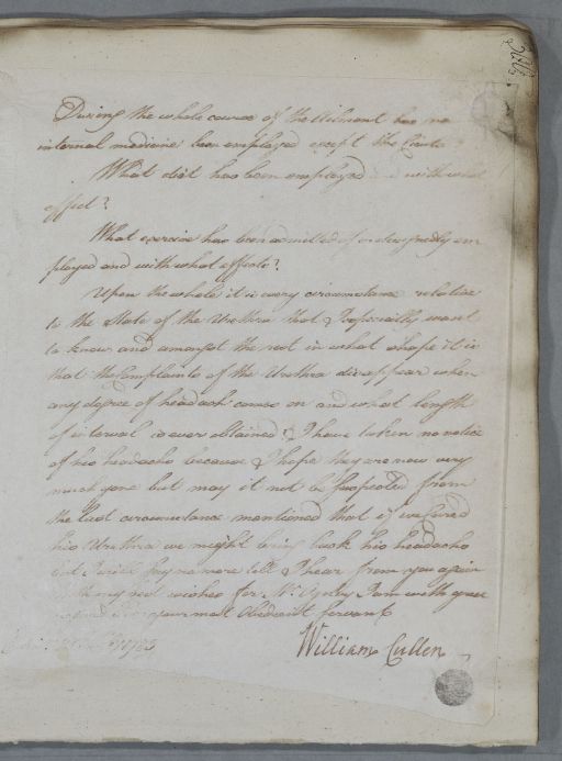 The Consultation Letters of Dr William Cullen (1710-1790) at the Royal College of Physicians of Edinburgh