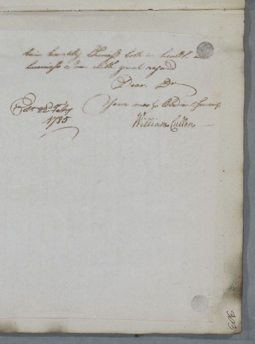 [ID:4987] From: Dr William Cullen (Professor Cullen) / To: Dr William Hamilton (in Glasgow) / Regarding: Mr Muir (Patient) / 22 February 1785 / (Outgoing)