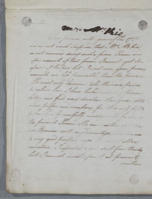 [ID:4989] From: Dr William Cullen (Professor Cullen) / To: Mr John McKie (Junior) / Regarding: Mrs McKie (Patient) / February 1785 / (Outgoing)