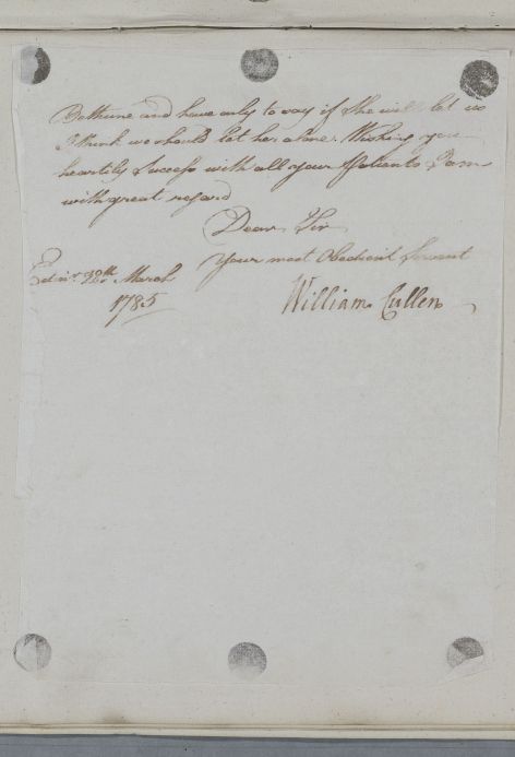 [ID:5013] From: Dr William Cullen (Professor Cullen) / To: Mr John Goodsir / Regarding: Mrs Anne Bethune (Bethune) (of Balfour and Kilconquhar) (Patient), Miss Anne, Alison or Elizabeth Lindsay (Patient) / 28 March 1785 / (Outgoing)