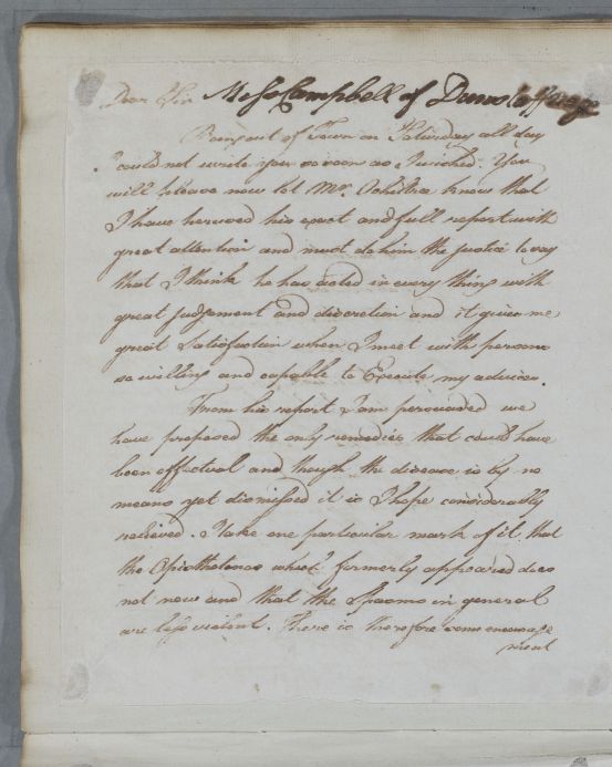 [ID:5025] From: Dr William Cullen (Professor Cullen) / To: Dr Ivie Campbell / Regarding: Miss Campbell (of Dunstaffnage) (Patient) / 18 April 1785 / (Outgoing)