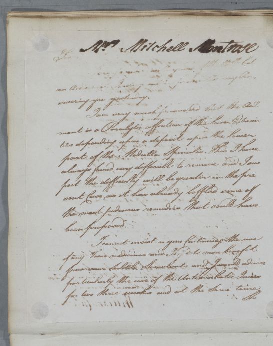 Letter concerning the case of Mrs Mitchell, Montrose.
