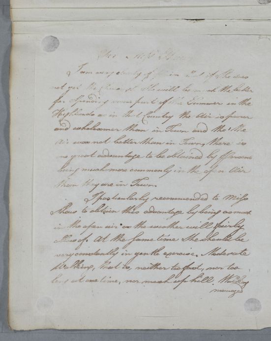 | Summary | Reply 'For Miss Shaw'. Advice for a lady or girl who is to spend the summer taking a goat whey cure in the Highlands. Date inferred from place in casebook. No incoming letter, so possibly a personal consultation; no firm identification possible. |
