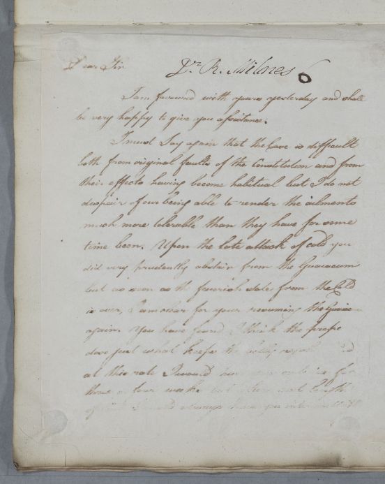 | Summary | Reply to Dr R[ichard] Milnes concerning the case of an unnamed patient. |